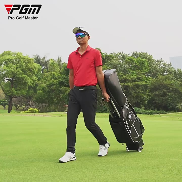 PGM Golf Standard Ball Bag Professional Leather PU Waterproof Golf Cart Club Airbag High Capacity Package With Wheel QB029
