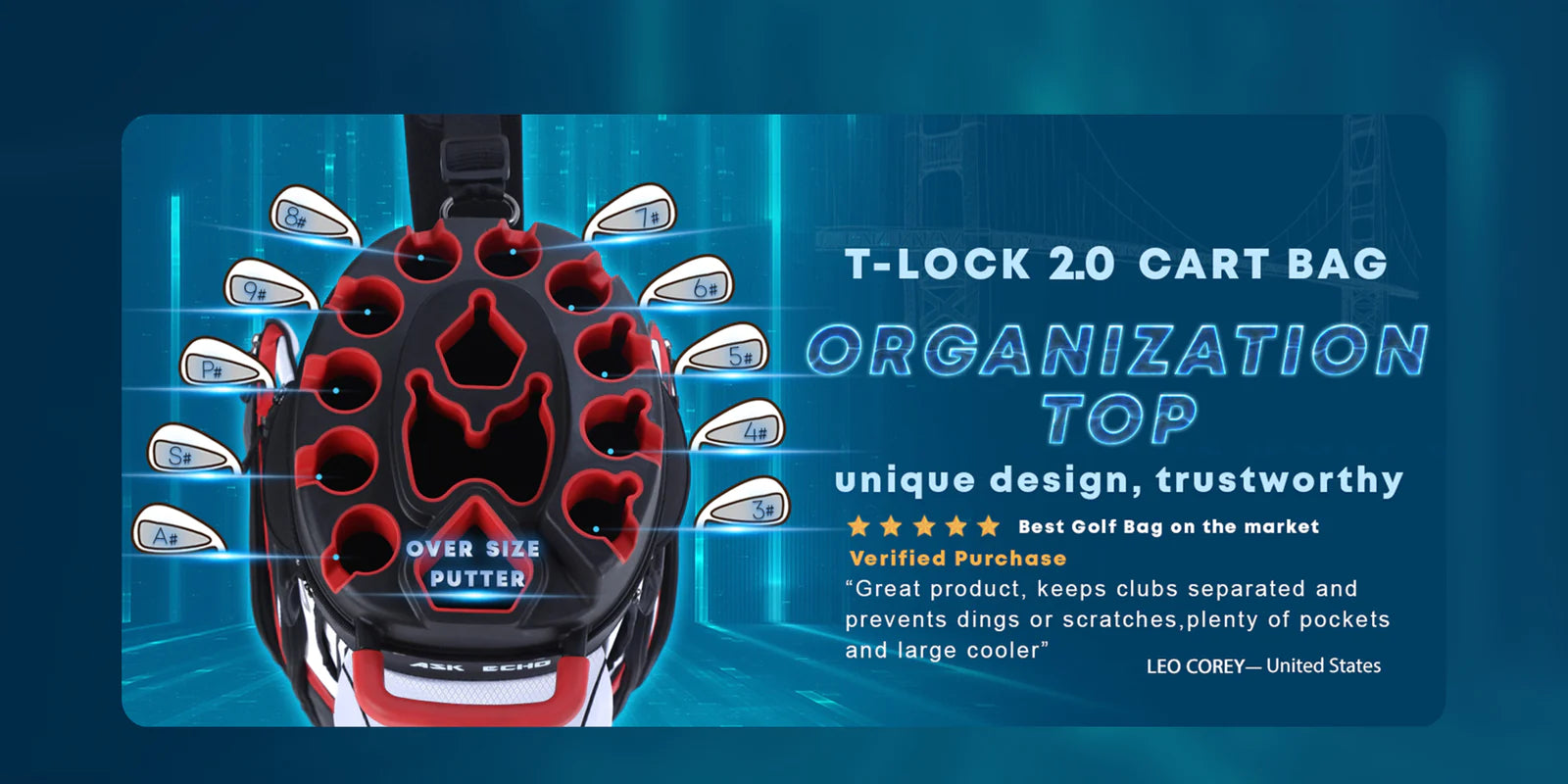 PGM – sac de chariot de Golf, organisateur à 14 voies, séparateur supérieur silencieux/noir